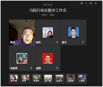 2月27日下午14:30,学院再次召开了疫情防控期间在线教学工作会,专题研究了2020年春季学期本科在线教学工作,会议由副院长刘富胜主持,学院全体班子成员、行政人员及各教研部主任参加了会议。
