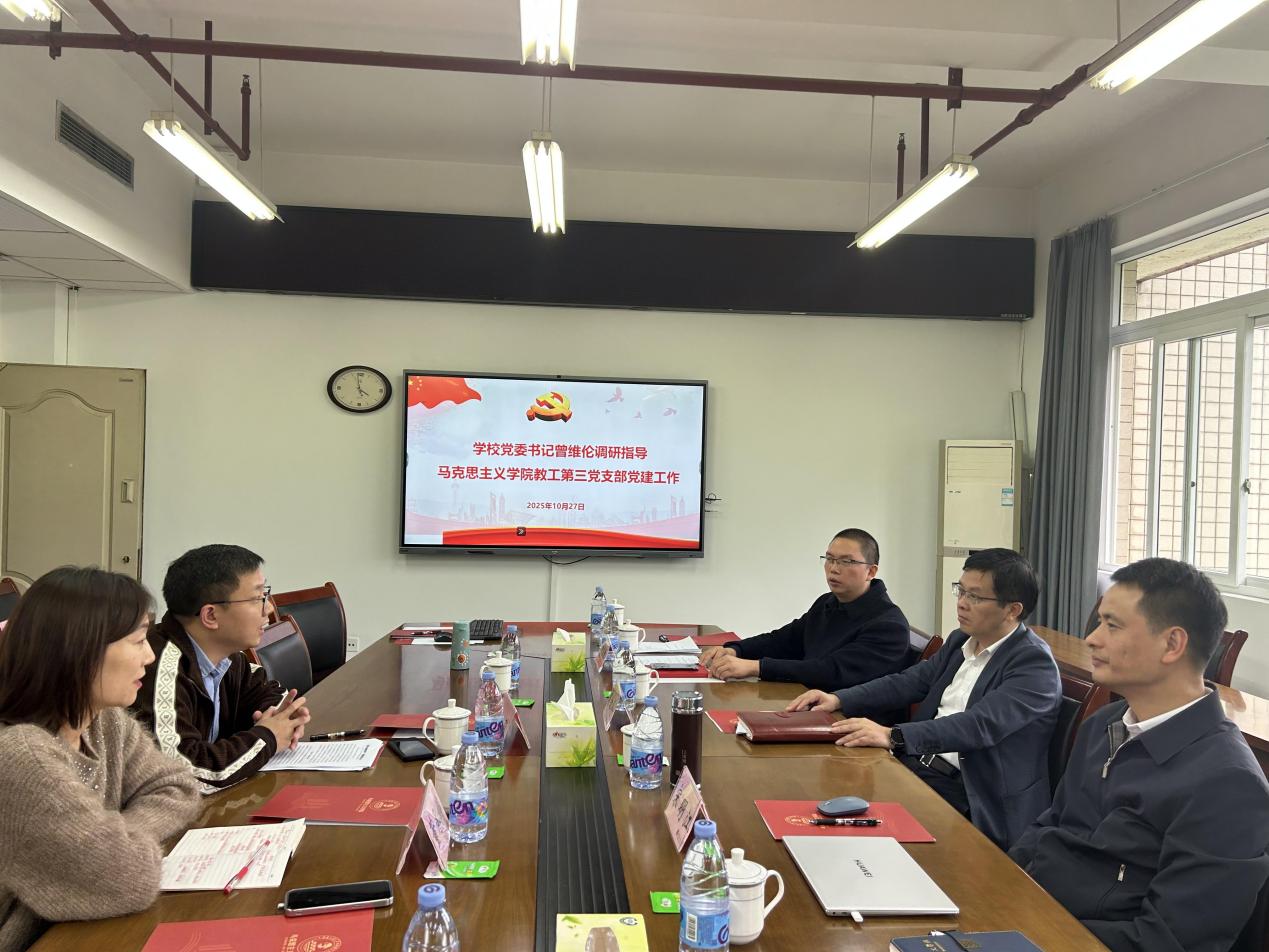 10月27日下午,校党委书记曾维伦莅临马克思主义学院调研指导教工第三党支部党建工作。学院党委书记、院长、教工第三党支部党员代表参加了会议,会议由学院党委书记宋明江主持。