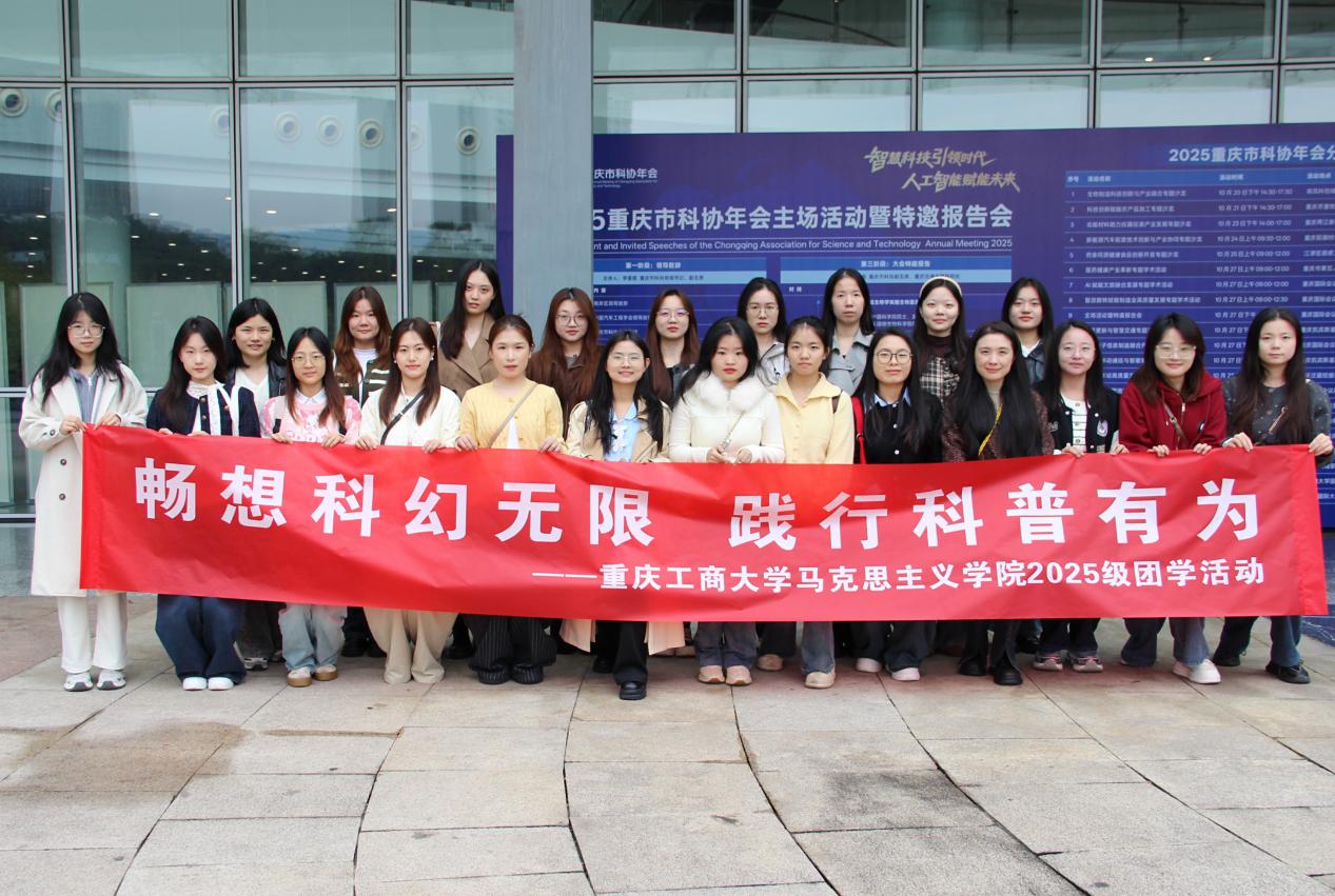 为提升 2025 级青年团员创新能力和创造力,拓宽跨学科思维,10 月 27 日,在共青团重庆工商大学委员会的组织下,马克思主义学院 2025 级团员青年前往重庆国际会议展览中心参与 “2025 科幻助力科普发展交流活动”。本次团学活动由学院学工办主任、分团委书记秦杉带队,活动不仅为我院团员搭建起跨界学习、实践赋能的优质平台,更让大家在沉浸式体验科幻独特魅力、近距离接触科学前沿动态的过程中,深化了对科技创新时代价值、文化自信丰富内涵及青年使命责任担当的认知。