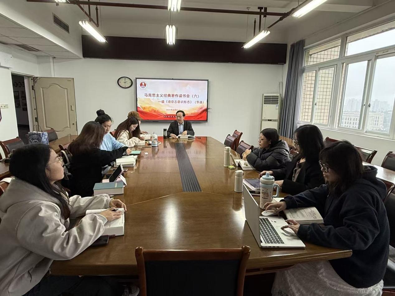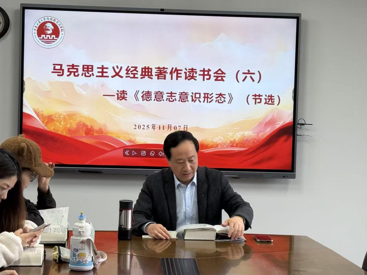 11月7日下午,马克思主义学院第六次经典著作读书会在慧智楼1210会议室圆满举办。本次活动以《德意志意识形态(节选)》(第一章 费尔巴哈)为核心研读文本,由邓龙奎教授主讲,马克思主义基本原理研究方向一、二年级研究生全员参与。读书会旨在深化青年学子对马克思主义经典著作的系统性理解,强化对马克思主义基本原理的精准把握,搭建高质量师生学术交流平台,引导青年在经典研读中坚定信仰、锤炼本领、勇担时代使命。