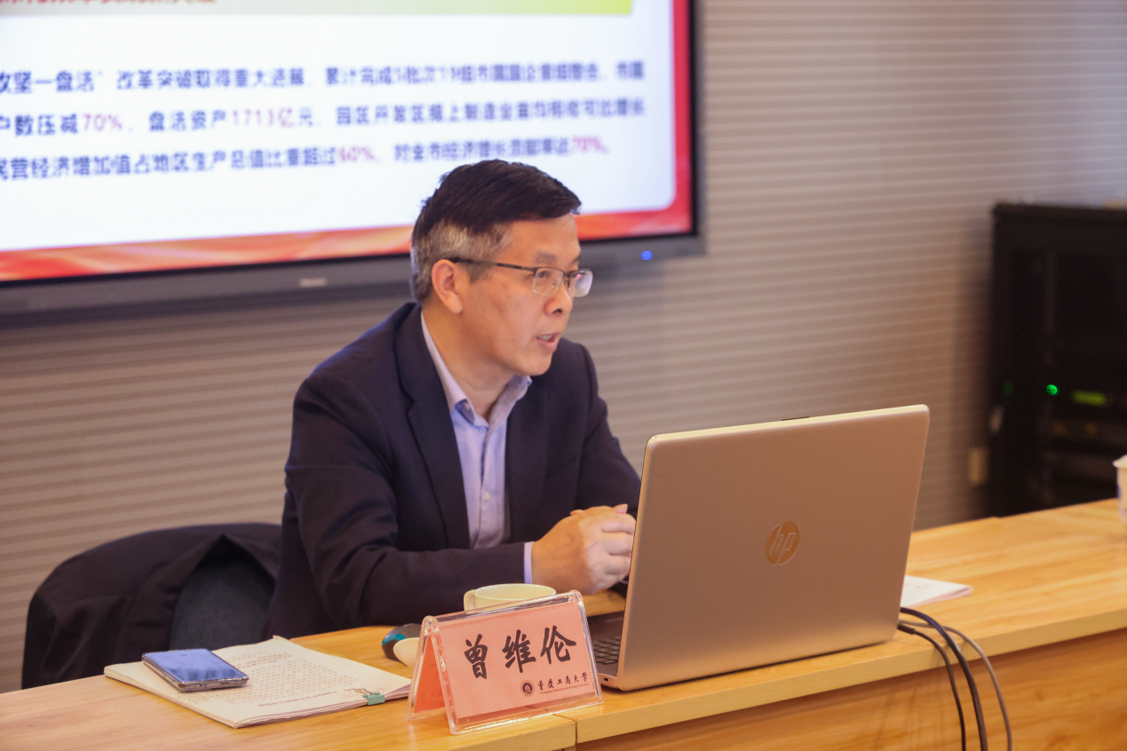 12月3日下午,市委宣讲团成员、重庆工商大学党委书记曾维伦在启智楼80412C教室为我院师生作党的二十届四中全会精神宣讲。宣讲会由学院党委书记、副院长宋明江主持。