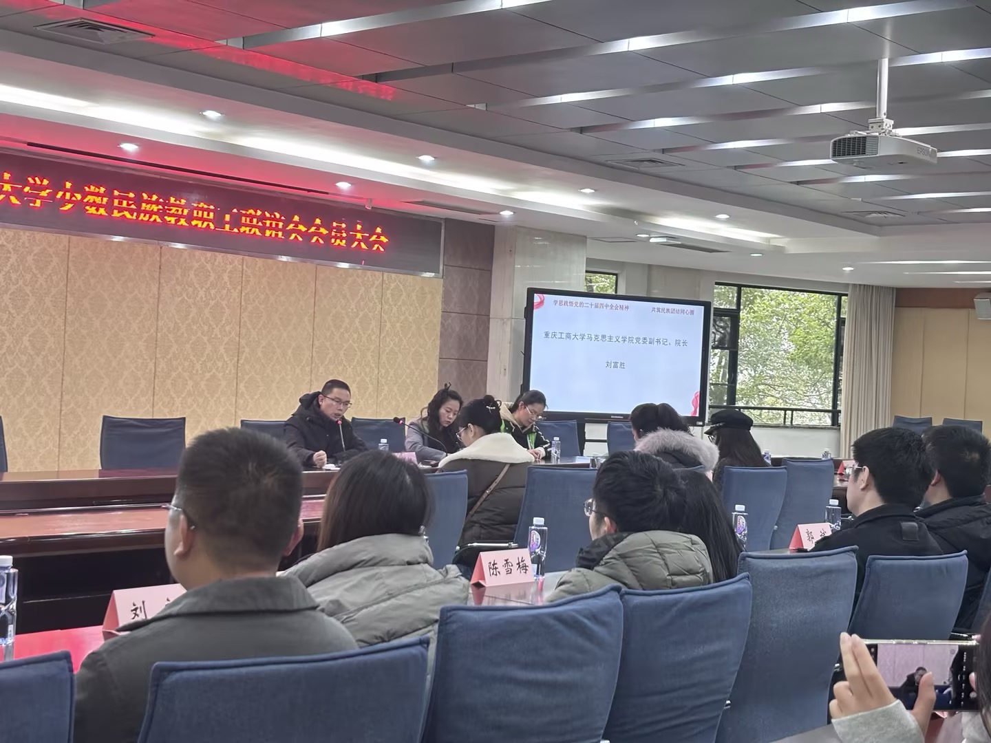 重庆工商大学马克思主义学院党委副书记、院长刘富胜受邀作开场微宣讲。他指出,党的二十届四中全会是在实现中华民族伟大复兴关键时期召开的一次重要会议,明确了新时代新征程党和国家事业发展的目标任务,为民族团结进步事业指明了方向。刘富胜院长强调,民族团结是中华民族永续发展的根本保障,青年教师要以实际行动践行全会精神,铸牢中华民族共同体意识。