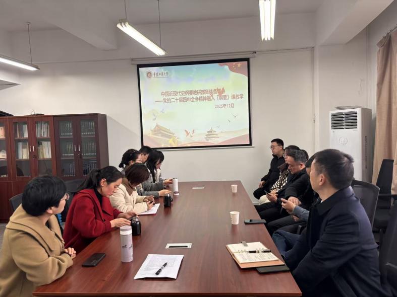 12月19日,马克思主义学院教工第四支部在90909会议室开展了学习党的二十届四中全会精神支部活动暨集体备课会,会议由支部书记刘静主持,党委副书记、副院长、纪委书记洪富忠及教研部全体教师参加了此次活动。