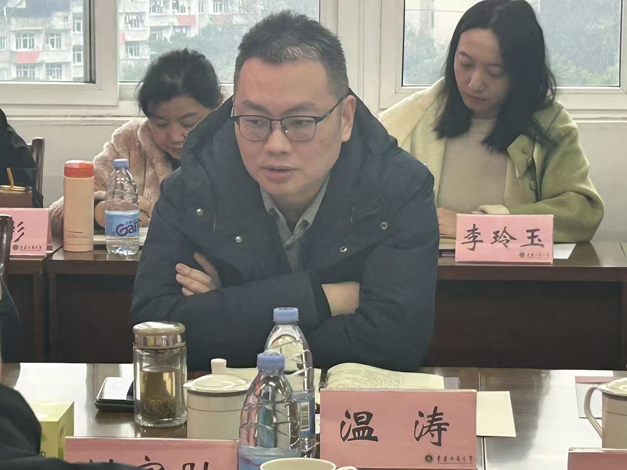 在认真听取汇报及职能部门回应后,温涛作总结发言。他从十个关键方面对学院发展提出明确要求与指导意见:一是狠抓思政课程建设,特别注意提升研究生思政课育人质量,筑牢立德树人思想根基;二是加快场馆建设提质升级,夯实教学实践保障基础;三是推动教学成果奖培育申报融入新理念,提升成果核心竞争力;四是持续强化师资队伍建设,优化梯队结构与发展活力;五是精准明晰研究方向,聚焦核心领域深耕细作;六是规范推进专业学位建设,提升人才培养适配度;七是加强团队建设,凝聚教学科研协同合力;八是围绕特色凝练走高质量发展之路,打造差异化优势;九是做好有工商特色的马克思主义学科智库,提升社会服务效能;十是细化“十五五”事业发展规划编制,锚定长远发展目标一张蓝图绘到底。