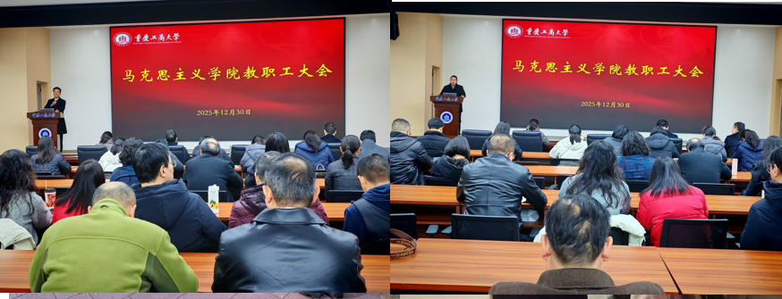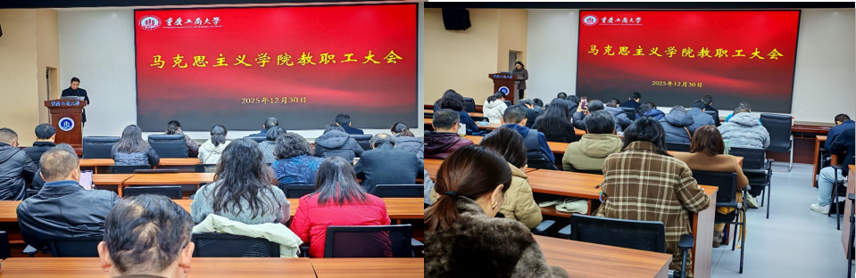 2025年12月30日下午,马克思主义学院在明德楼1019会议室召开2025年度中层干部述职评议考核会议。会议由学院党委书记宋明江主持,全体教职工参加会议。