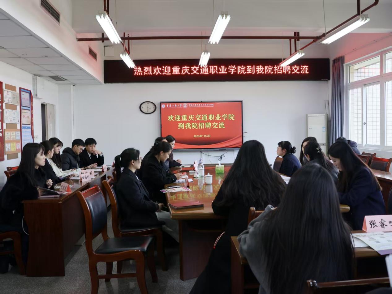 为深化校际合作,搭建就业沟通平台,助力研究生高质量充分就业,1月6日,重庆交通职业学院人事处处长梁静、干事庞何晓雪来我院开展专场招聘交流活动。学院党委副书记、院长刘富胜,党委副书记、副院长、纪委书记洪富忠,学工办主任、分团委书记秦杉及2023级全体研究生参加了本次活动。