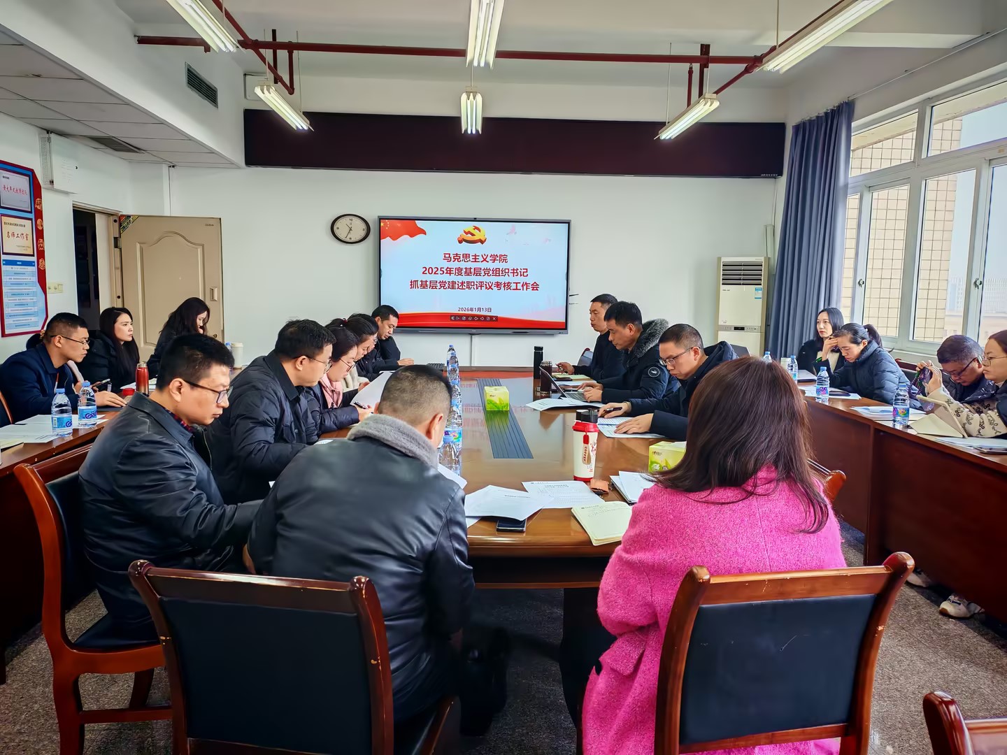 1月13日上午,马克思主义学院2025年度基层党支部书记抓基层党建述职评议考核工作会在慧智楼91210会议室召开。学院领导班子成员、专职组织员、全体党支部书记及党员代表参会,会议由学院党委书记宋明江主持。
