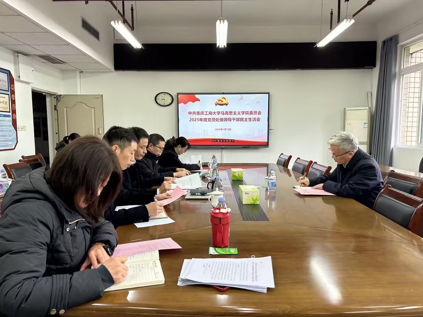 根据学校党委统一部署,马克思主义学院党委于3月18日上午在慧智楼91210会议室召开2025年度党员处级领导干部民主生活会,校党委书记曾维伦到会指导并作点评讲话。会议由学院党委书记宋明江主持,学院领导班子成员参加会议,专职组织员、综合办主任列席会议。