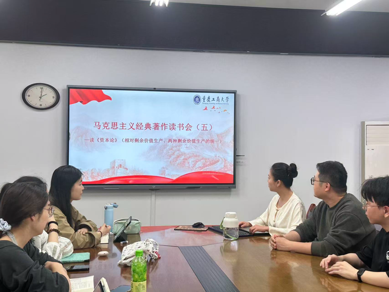 为深入学习贯彻习近平新时代中国特色社会主义思想,持续推进马克思主义经典著作研读常态化、制度化,切实提升研究生马克思主义理论素养与文本解读能力,马克思主义学院于2026年4月3日上午,在慧智楼1210举行本学期第五次马克思主义经典著作读书会。本次读书会专题研读《资本论》第一卷第四篇至第五篇(199—235 页,第 10—14 章),聚焦相对剩余价值生产、两种剩余价值的统一等核心理论问题展开深入学习与研讨交流。