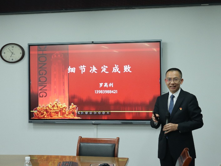 罗高利以“细节决定成败”为题,围绕“什么是细节、工作中的细节、如何做好细节以及做好细节的几点体会”四个方面,为在场师生分享了他对于细节的深刻认识与实践方法。一是关于什么是细节的理解。他认为细节就是将自己所经手的事情的每一个环节都想清楚、都弄清楚,力争做细、做实、做深、做精、做优。二是结合细节在办文、办会、办事中的具体案例分析,强调注重细节的重要性。三是对于如何做好细节,他认为要细心,要用心,更要有责任心。四是要使细节做得更细、更深、更实,做到极致,还应当加强学习、注重调研、学会反思以及善于总结。