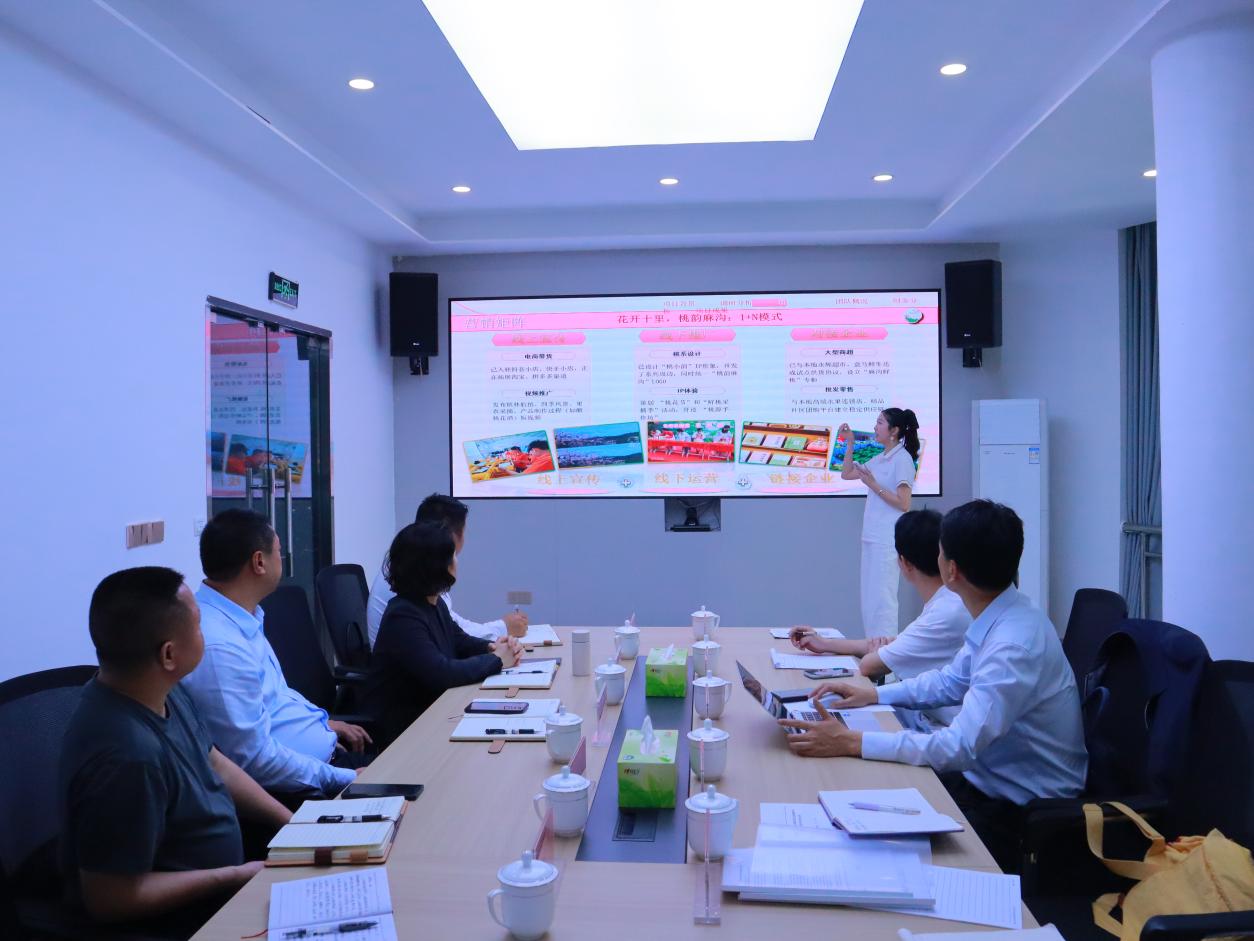 调研团队对安稳镇进行了深度走访。团队首先考察了羊角村、崇河村的红军街,实地踏勘了红色遗址风貌与展陈内容,深入了解红色故事挖掘、研学路线设计、配套标识与安全保障等情况,亲身感受红色文旅资源的现状与潜力。随后,团队深入本次合作的重点村落麻沟村,与村党总支书记、村委会主任及当地农户进行了面对面交流。访谈围绕麻沟村六月桃产业的规模、销售渠道、品牌建设等现状展开,并深入探讨了“认养一棵桃树”小程序项目的可行性、村民对线上销售农产品的意愿与困难,以及开展红色农耕研学活动的资源与合作模式。此次调研为后续项目的精准落地收集了宝贵的一手资料,期间双方还举行了简短的授牌仪式。
