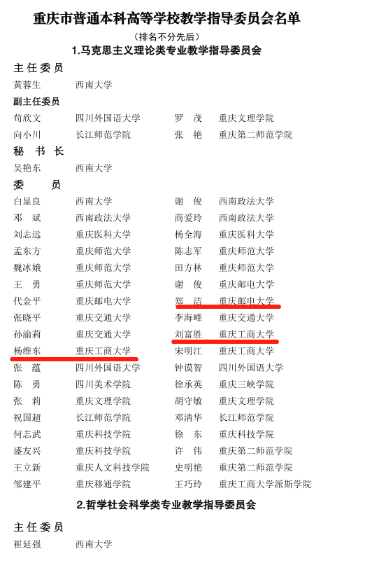 重庆市普通本科高校教学指导委员会委员